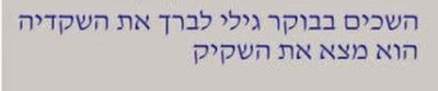 Оказывается, всё это действо происходило для того, чтобы рано утром достаться мальчику Гили, пришедшему (לברך את שקדיה) благословить миндальное дерево.